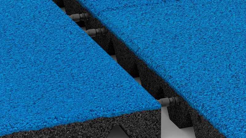 Otvorená štruktúra EPDM-povrchu je odolná voči UV, protišmyková a odolná proti oderu – aj na mokrom povrchu. Povrch je príjemný na dotyk a vhodný na použitie v zónach s priamym telesným kontaktom. Spodná strana z granulátu ELT je tvarovaná do obrátených komolých pyramíd, ktoré zlepšujú tlmenie nárazov, podporujú odvod vody a urýchľujú schnutie – praktické pri meniacich sa poveternostných podmienkach.