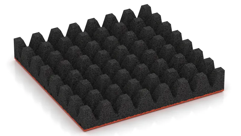 Dlaždica pozostáva z dvoch vrstiev: funkčný základ z recyklovaného granulátu ELT (z pneumatík) s hrúbkou takmer 7,5 cm a užitočná vrchná vrstva z nového, v hmote zafarbeného EPDM granulátu. Otvorený porézny povrch z EPDM je protišmykový, UV odolný, oderuvzdorný a príjemný na dotyk. Spodná strana má formu obrátených komolých pyramíd, ktoré pohlcujú nárazovú energiu a zároveň slúžia ako drenáž – tým sa zabraňuje hromadeniu vody a urýchľuje sa schnutie.