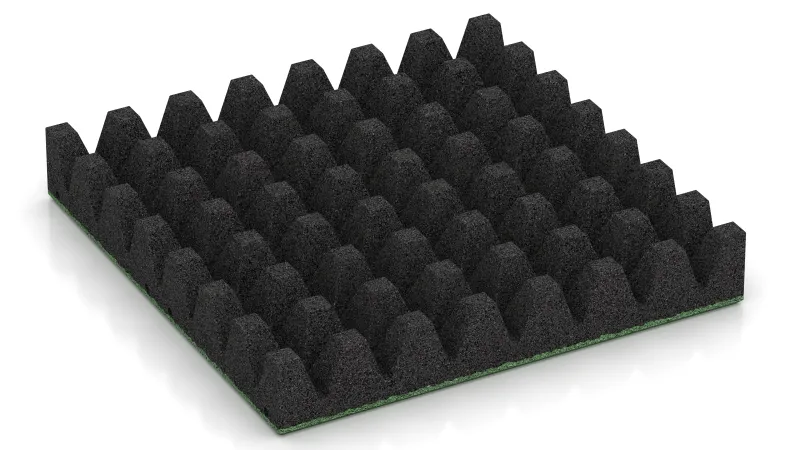 Podložky sú vyrobené z PU-pojeného gumového granulátu s pružným, protišmykovým povrchom. Hrúbka a hustota určujú tlmenie nárazov a certifikovanú výšku pádu podľa EN 1177. Formát 50 × 50 cm minimalizuje odpad pri rezaní a jednotlivé podložky je možné v prípade potreby jednoducho vymeniť.
