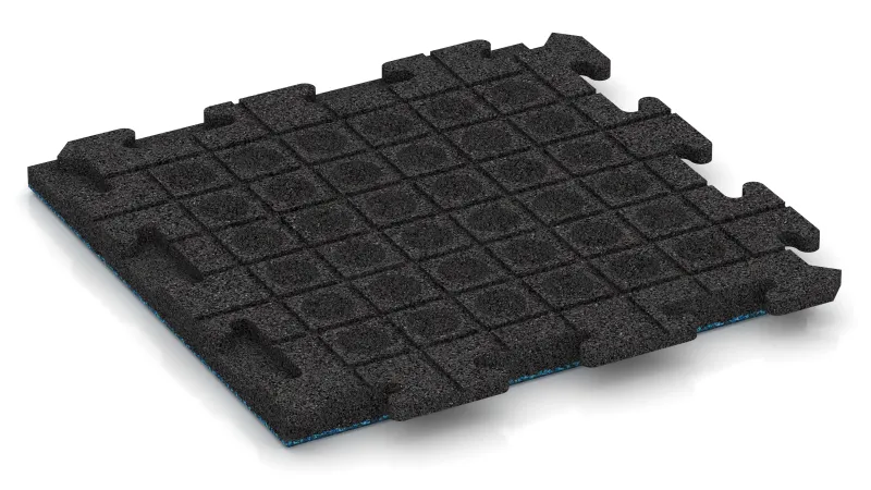 Fitness gumové dlaždice Classic sú vybavené skrytým puzzle spojením. Dlaždice do seba zapadajú ako puzzle, pričom spojenie zostáva na povrchu neviditeľné. Pri pokládke tak vzniká stabilné a pevné spojenie bez viditeľných škár. Výsledkom je jednotný povrch s charakteristickým vzorom krížových škár – jasná, usporiadaná mriežka pripomínajúca šachovnicu, ktorá dodáva ploche profesionálny vzhľad.