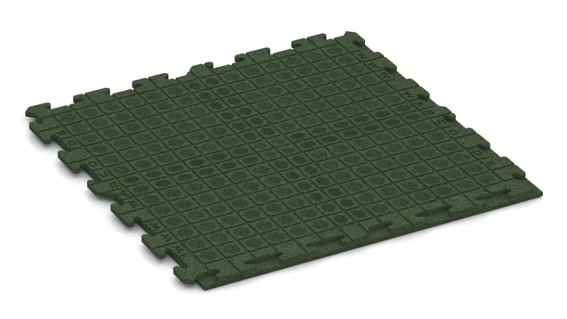 Dlaždice sú vyrobené z PU viazaného gumového granulátu, sú odolné voči poveternostným vplyvom, vodopriepustné a vhodné aj na trvalé vonkajšie použitie. Dažďová voda preteká štruktúrou, čím sa zabraňuje tvorbe mlák, a povrch zostáva bezpečný a funkčný za každého počasia. Formát 50 × 50 cm je vhodný na vnútorné aj vonkajšie použitie, zatiaľ čo väčšie dlaždice vo formáte 100 × 100 cm sa odporúčajú iba do interiérov.