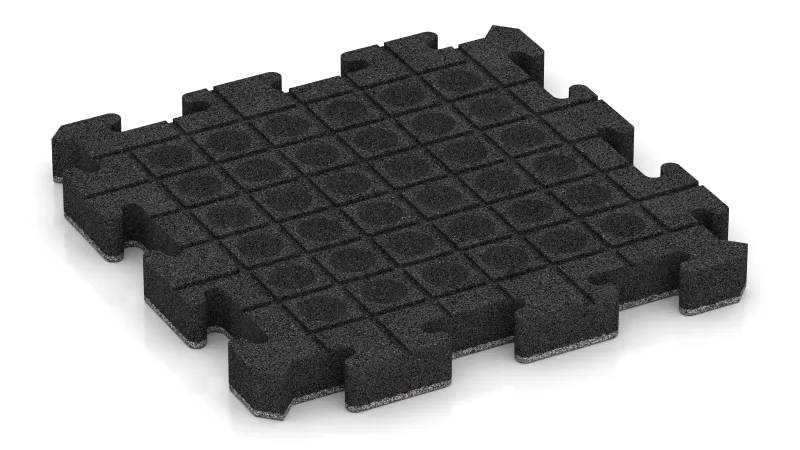 Podložky sú vyrobené z PU viazaného gumového granulátu a sú dostupné v hrúbkach 3, 4 alebo 5 cm. Vďaka vysokej hustote poskytujú dobrú tlakovo stabilitu, nízku deformáciu a dobrú odolnosť proti opotrebovaniu. Sú ideálne pre zóny, kde sa používajú činky, zariadenia a intenzívne tréningové formy.