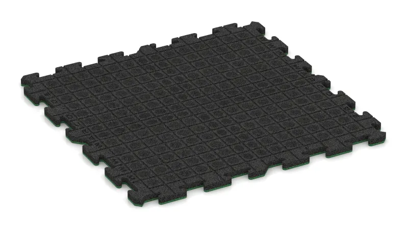 Podložky sú vyrobené z PU viazaného gumového granulátu a sú dostupné v hrúbkach 3, 4 alebo 5 cm. Spoľahlivo absorbujú nárazy, znižujú vibrácie a tlmia hluk. Kĺby, šľachy a väzy sú citeľne odľahčené, zatiaľ čo podklad je účinne chránený.