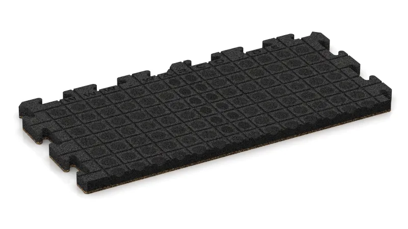 Okrajová doska HD poskytuje presné a odolné ukončenie pozdĺž vonkajších hrán plôch vyložených doskami s vysokou hustotou. Každý prvok predstavuje polovicu celej puzzle dosky: vnútorná strana je vybavená charakteristickým puzzle zámkom a dokonale zapadá do ostatných dosiek, zatiaľ čo vonkajšia strana tvorí hladký, rovný ukončovací okraj. Takto celá plocha získa funkčný a vizuálne jednotný rám.