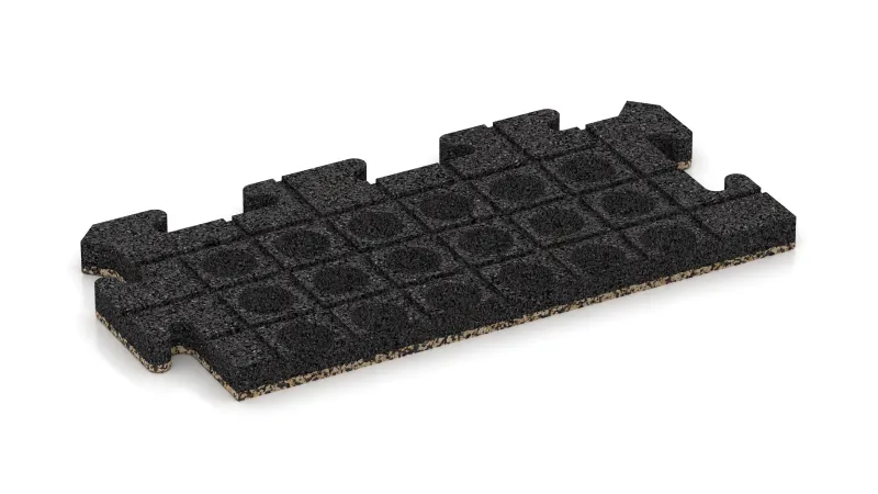 Okrajová doska HD poskytuje presné a odolné ukončenie pozdĺž vonkajších hrán plôch vyložených doskami s vysokou hustotou. Každý prvok predstavuje polovicu celej puzzle dosky: vnútorná strana je vybavená charakteristickým puzzle zámkom a dokonale zapadá do ostatných dosiek, zatiaľ čo vonkajšia strana tvorí hladký, rovný ukončovací okraj. Takto celá plocha získa funkčný a vizuálne jednotný rám.