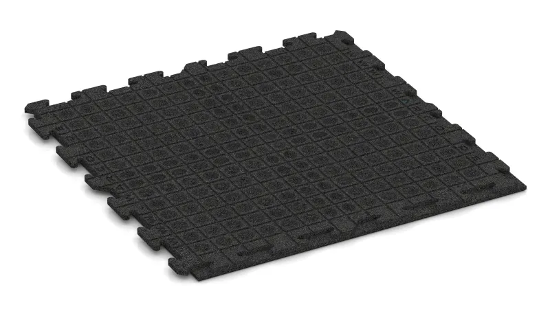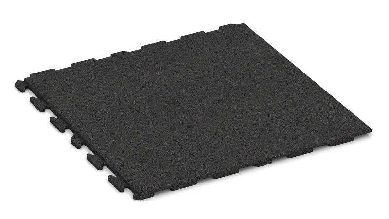 The playground flooring generates a pleasant, naturally warm ground feeling. It's well water-permeable, so that it doesn't seal the ground below and becomes quickly dry after a rainfall. The large-sized tiles can be laid quickly and in a stable way; in case of an unbounded ground, a base course made of plastic honeycomb grid is recommended.
