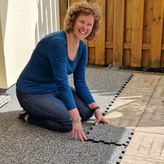 WARCO dosky sú zložené približne zo 90 % gumového granulátu a 10 % polyuretánového pojiva. Tento materiál je mimoriadne odolný a mrazuvzdorný, a preto je ideálny pre balkóny a terasy. Ďalšou výhodou je jednoduchá pokládka, pretože sa dosky len položia – nie je potrebné ich skrutkovať ani lepiť.