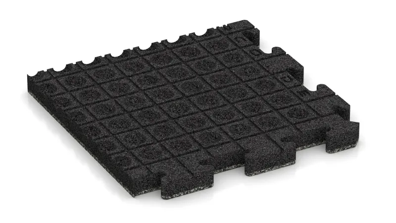 Rohová doska HD zaručuje presné a trvácne ukončenie rohov na plochách vyložených doskami s vysokou hustotou. Každý prvok predstavuje štvrtinu celej puzzle dosky: vnútorné strany sú vybavené charakteristickým puzzle zámkom a presne zapadajú do ostatných dosiek, zatiaľ čo vonkajšie strany sú rovné a tvoria čistú ukončovaciu líniu. Výsledkom je robustný a vizuálne jednotný rám okolo celej plochy.