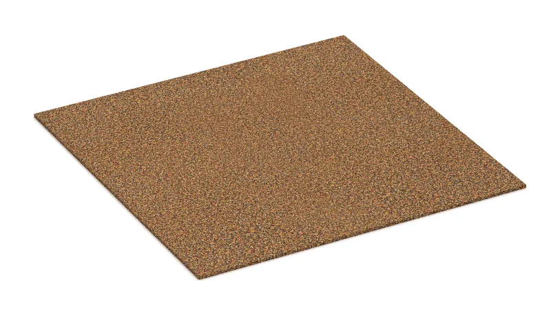 The rubber granulate tile consists of ground rubber and polyurethane. The distribution of the grain sizes in the ground rubber is exactly specified; the fine-grained and explicitly structured surfaces can be design in this way. While pressing, the permanently elastic binder polyurethane binds the single granules strongly together.