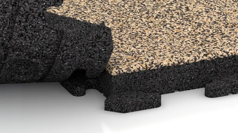 Komfort & bezpečnosť. Povrch je protišmykový a poskytuje istotu pri suchu aj mokre. Elastická štruktúra tlmí nárazy a kročajový hluk, čo zaručuje pohodlnú chôdzu a šetrnosť k kĺbom.
