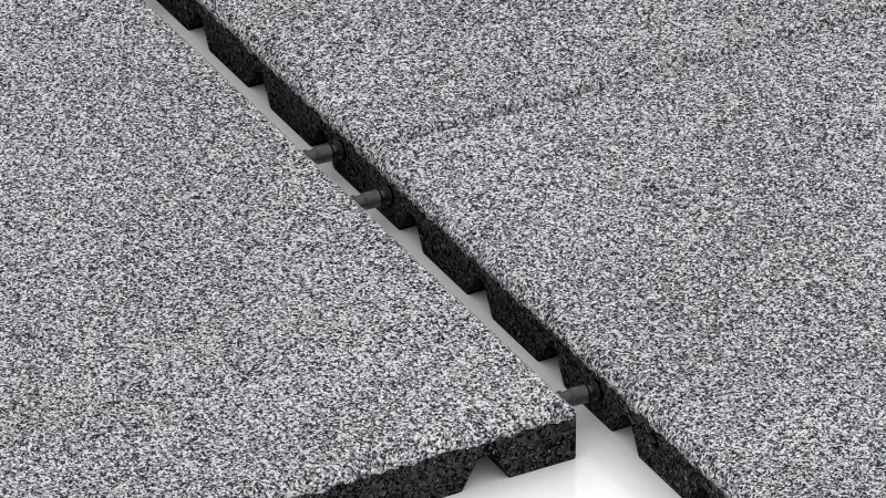 Komfort & bezpečnosť. Povrch je protišmykový a poskytuje istý krok aj za mokra. Elastická štruktúra účinne tlmí kročajový hluk a nárazy, čo zaručuje pohodlnú a kĺbom šetrnú chôdzu. V porovnaní s kameňom alebo keramikou sú dlaždice príjemnejšie na chodenie, aj naboso.